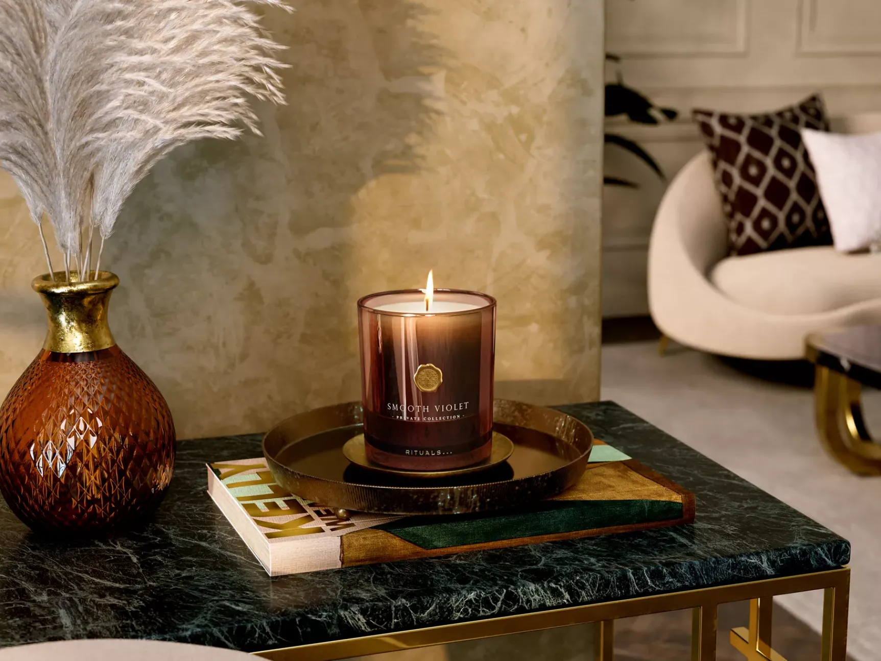 Dette luksuriøse duftlyset fra vår Private Collection gir en avslappende, beroligende og trøstende aroma. Smooth Violet kombinerer fruktige aksenter med blomsterelementer som rose og fiolblad. Sandeltre, og diskré noter av patchouli, musk og rav gir varme til duften. Varer i opptil 60 timer. Den vakre kobberfargede glasskrukken passer perfekt med ethvert interiør, enten i ditt eget hjem eller som en gave. Når den er tom, kan du fjerne restene og gjenbruke den til blomster, blyanter eller koster.